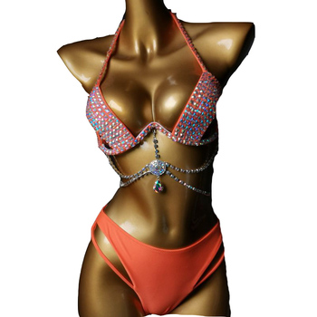 Crystal Diamond Bikini Designer Luxury Ballroom Performance Wear Swimwear Sexy Indian Women Rhinestone Catwalk Bikini Set