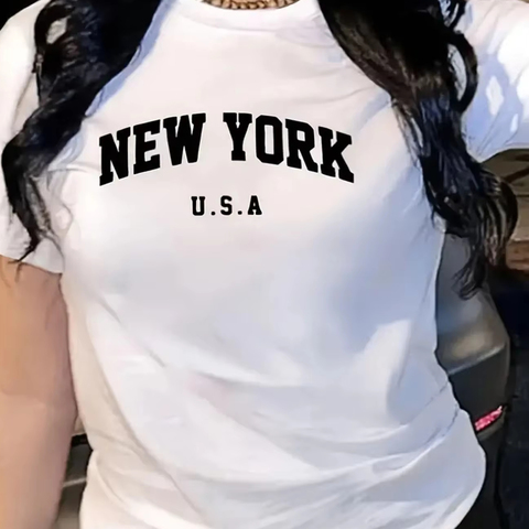 2025 אופנתי אמריקאי בסגנון רחוב אמריקאי טרנדי שרוול קצר חולצת טי סיטי לוגו עיר ניו יורק הדפסה חמה למכירה לשוק חוצה גבולות