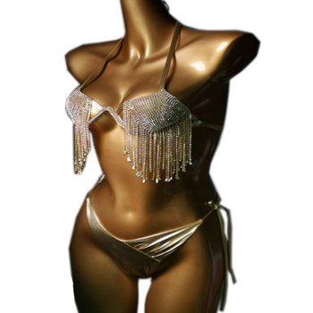 Bikini sexy en diamant d'usine, maillots de bain de luxe pour femmes, ensemble de bikini brillant en cristal et strass pour soirée en boîte de nuit