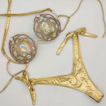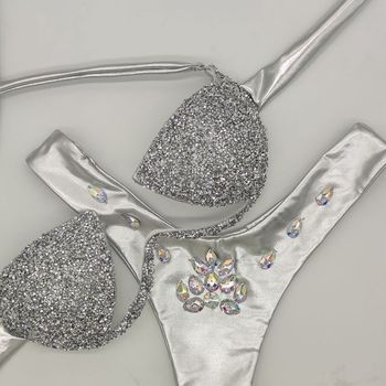 Traje de Baño de Cristal al por Mayor, Bikini de Lujo para Mujer Madura, Traje de Baño con Diamantes y Tirantes para Fiesta en Club Nocturno
